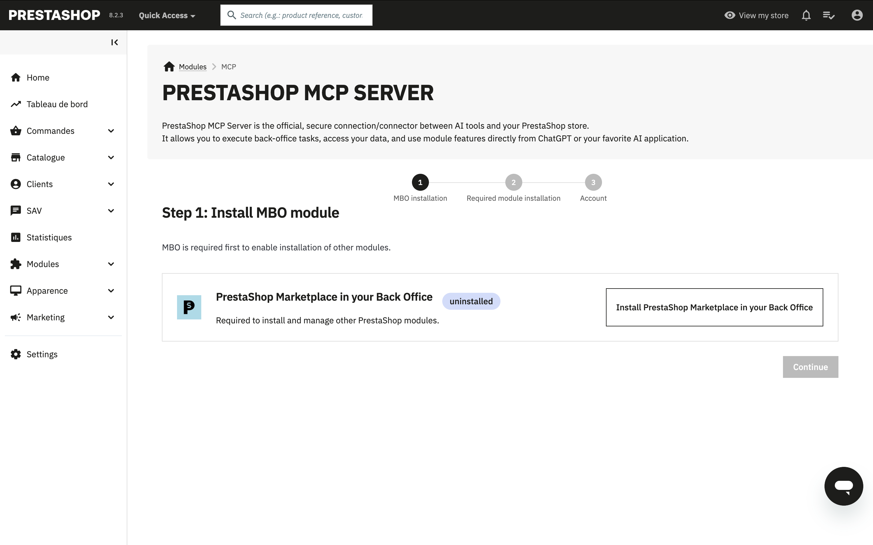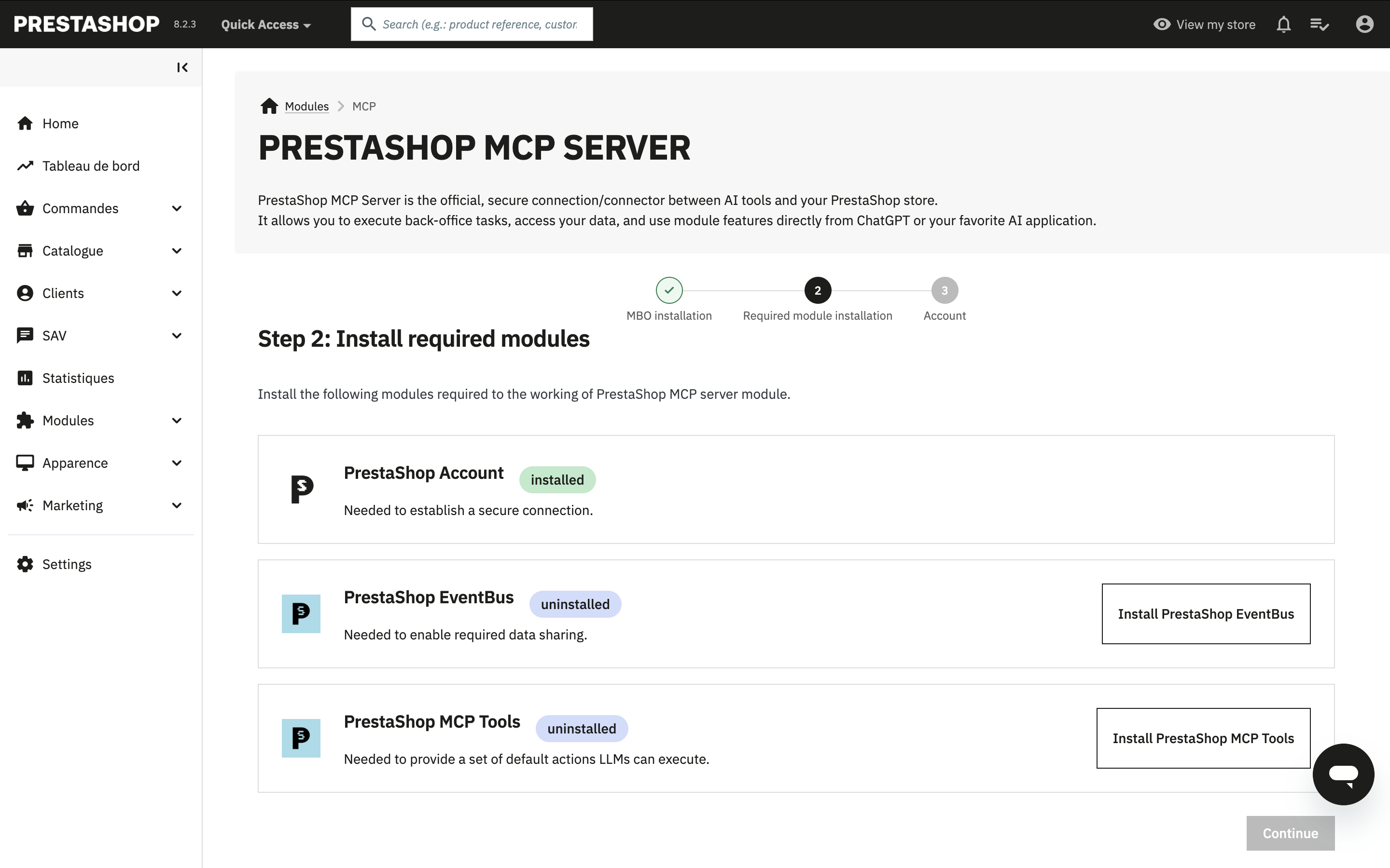 # Step 3: Install PrestaShop MBO